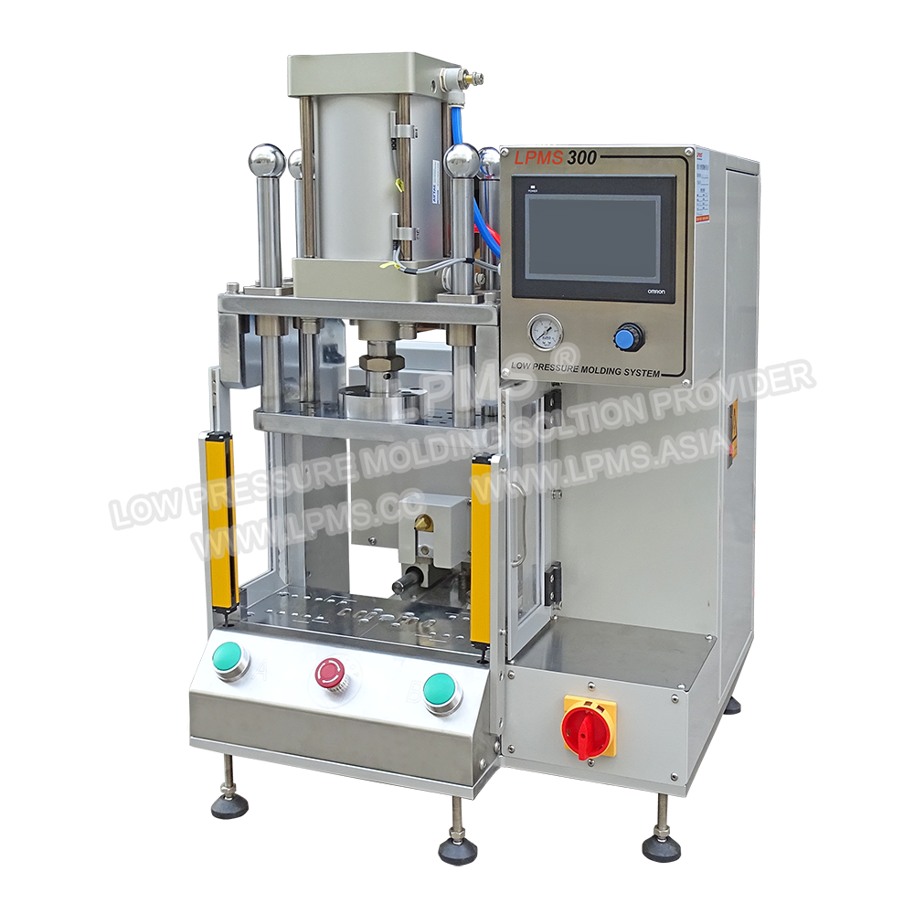 LPMS 300桌上型側(cè)式低壓注膠機(jī)的工作臺(tái)和熔膠系統(tǒng)為一體式設(shè)計(jì),其注膠槍位於模具側(cè)面,從模具側(cè)面注膠,當(dāng)產(chǎn)品較大時(shí)模具只能設(shè)計(jì)為一模一穴,採用側(cè)式低壓注膠可避免在產(chǎn)品正上方注膠而留下進(jìn)料痕影響產(chǎn)品美觀。適合封裝尺寸較大或外形複雜產(chǎn)品。